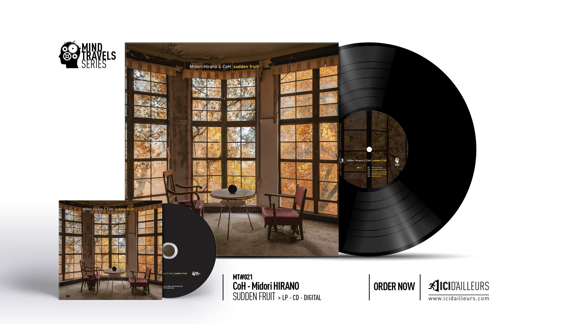 Perfectly aligned with the ethos of the Mind Travels collection, Sudden Fruit transcends genre boundaries and defies classification. In symbiosis, Midori Hirano and COH create a hybrid work that is both singular and universal. Sudden Fruit is a bold sonic exploration—an uncharted territory that promises to resonate deeply with those who dare to venture into its realm.