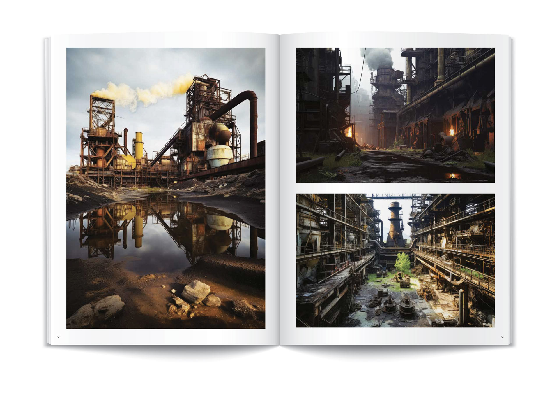 Drawing on fifteen years of urban exploration, with the help of artificial intelligence, Francis Meslet, a photographer of the poetry of ruins, takes us on a journey of discoverythrough anabandoned world in the not-so-distant future. Plant life reclaiming its rights in Europe’s largest deserted libraries; the open-air ruins of thefinest theatres; the remains of major decommissioned industrial facilities; Paris overgrownwith vegetation;and the ruins of Notre-Dame, which couldn’t be saved from the flames … Francis’s workis much more than just the iconographic documentation of an imagined world.It is an attempt to reconcile the future and the past, a meditation on the fragility of collective memory. A hunter of ephemeral moments, his generative art images reveal the duality of time, the coexistence of decline and radiance. With his sharp eye, he is a poet of decrepitude, capturing the soul of neglect and making each image a silent cry inthe desert of contemporary indifference.